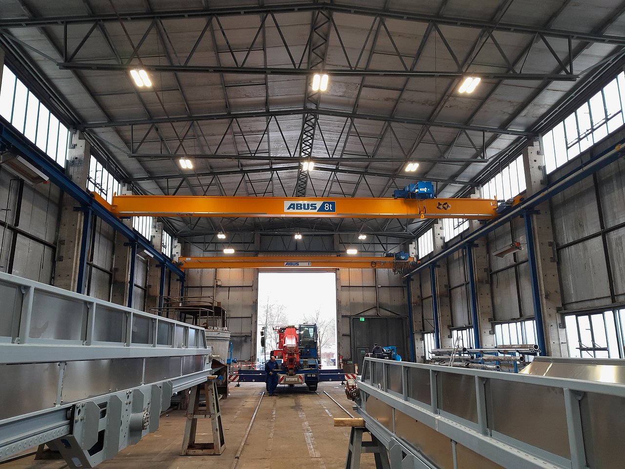 Installation eines zweiten 8-Tonnen-Einträgerlaufkrans und damit die Erweiterung der Kranbahn über die gesamte Hallenlänge