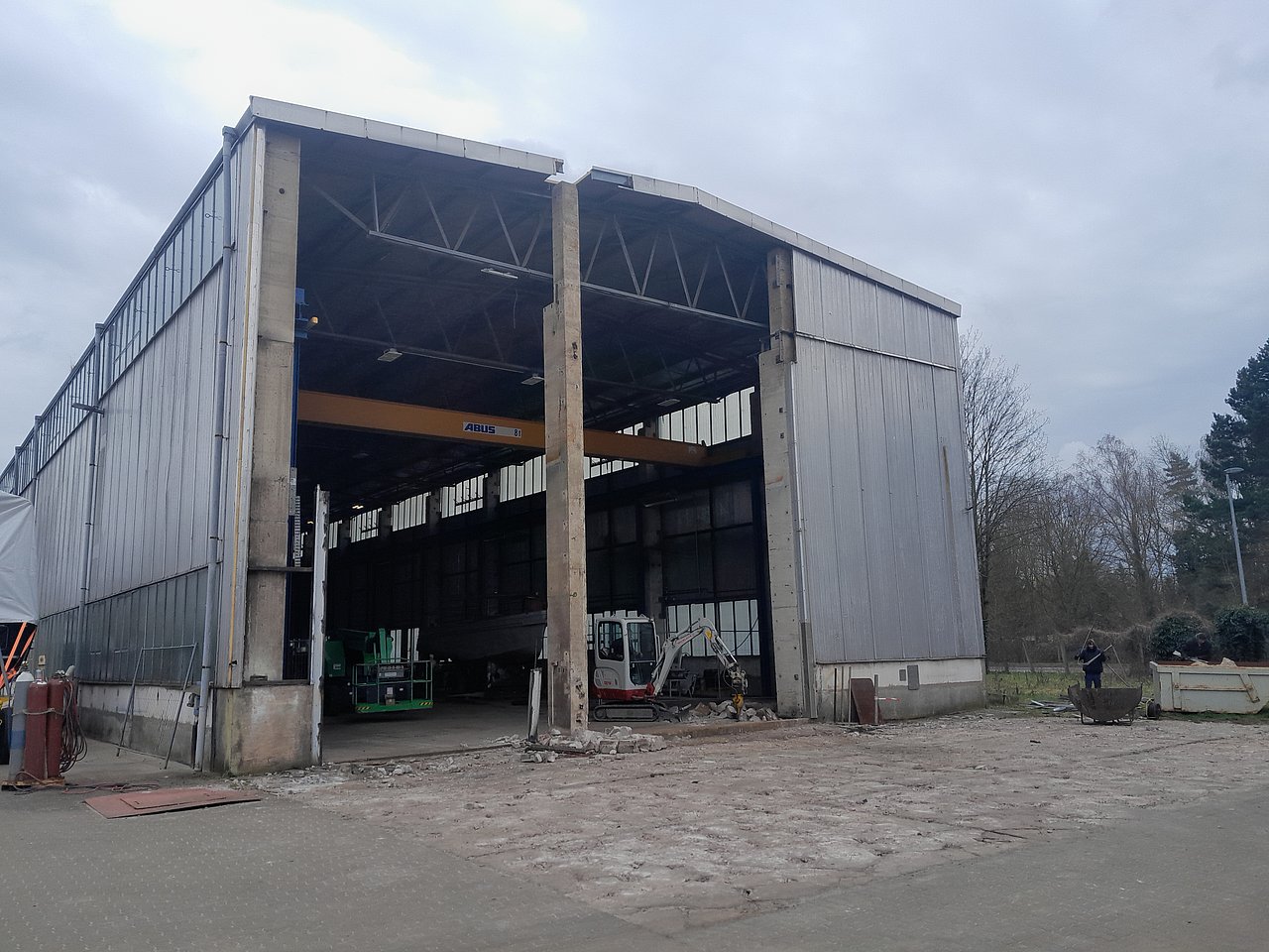 Verbreiterung der Durchfahrt von 5,50 m auf 10,50 m und Einbau eines doppelten Hallentors (4-Segment-Rolltor)